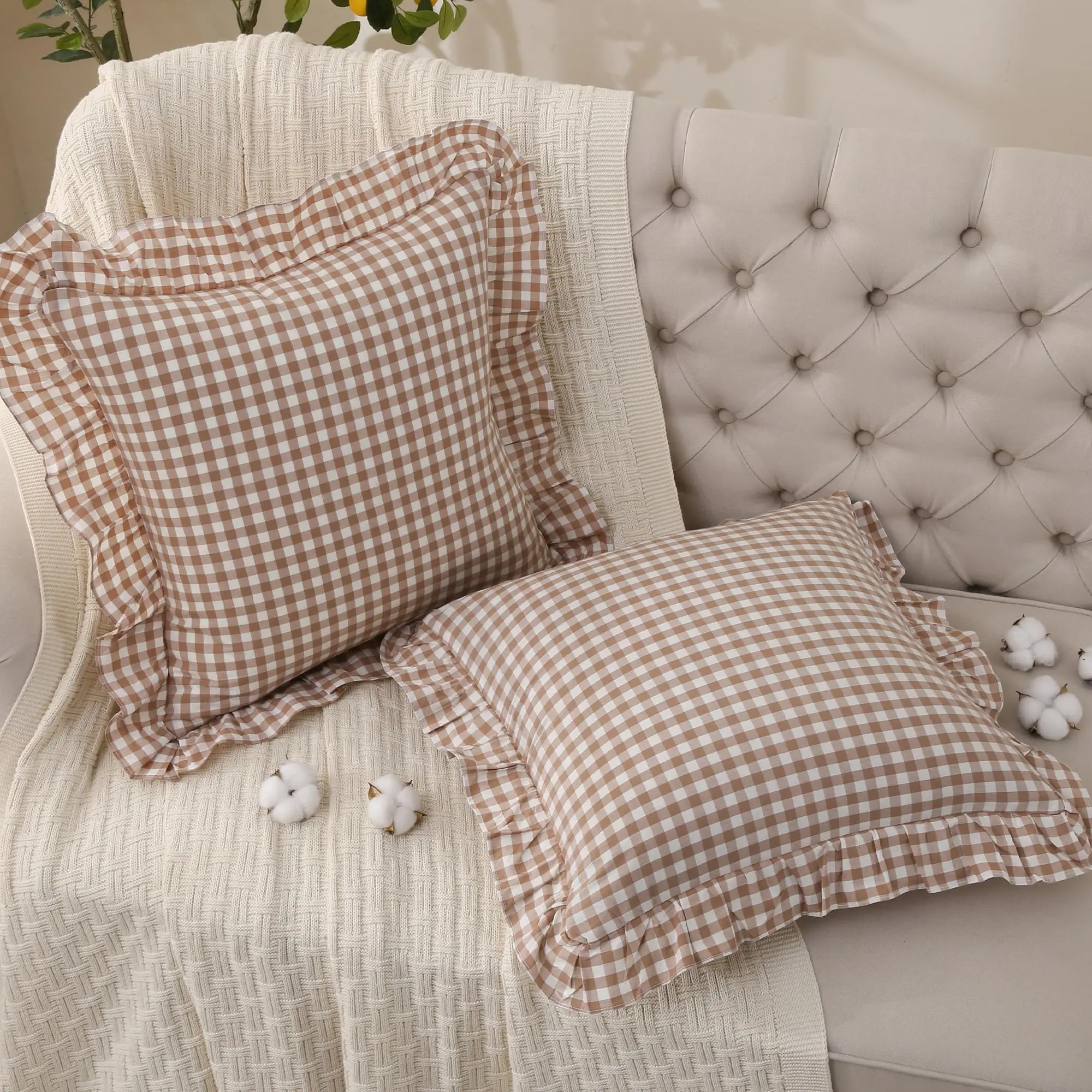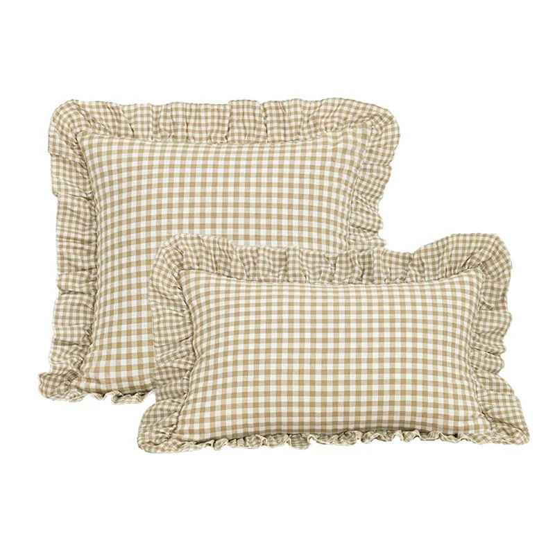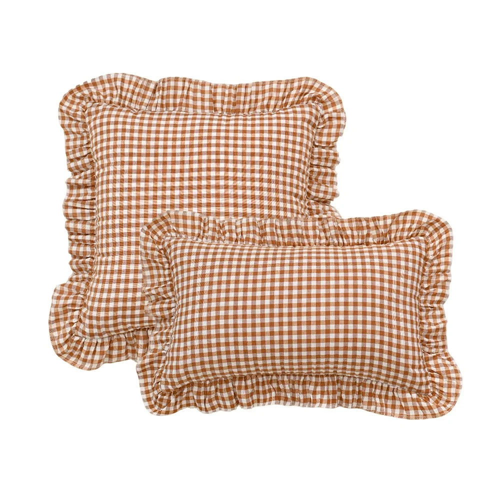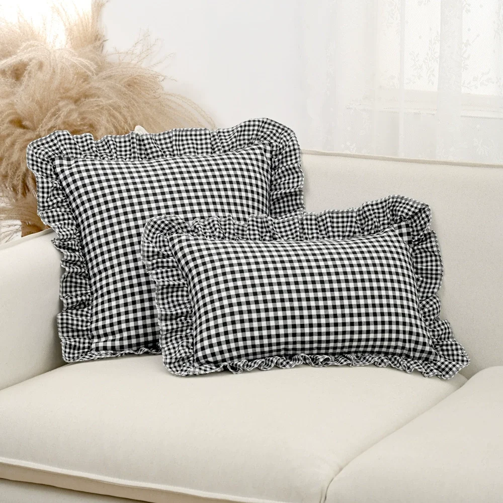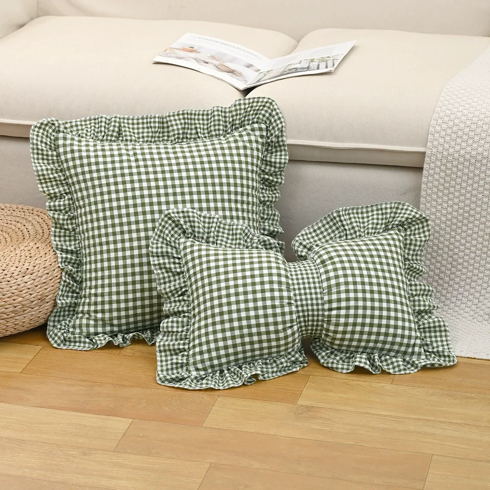 Com estampa xadrez suave e acabamento em babado delicado, ela carrega um charme rústico e atemporal — perfeito para criar espaços mais aconchegantes, leves e cheios de personalidade.