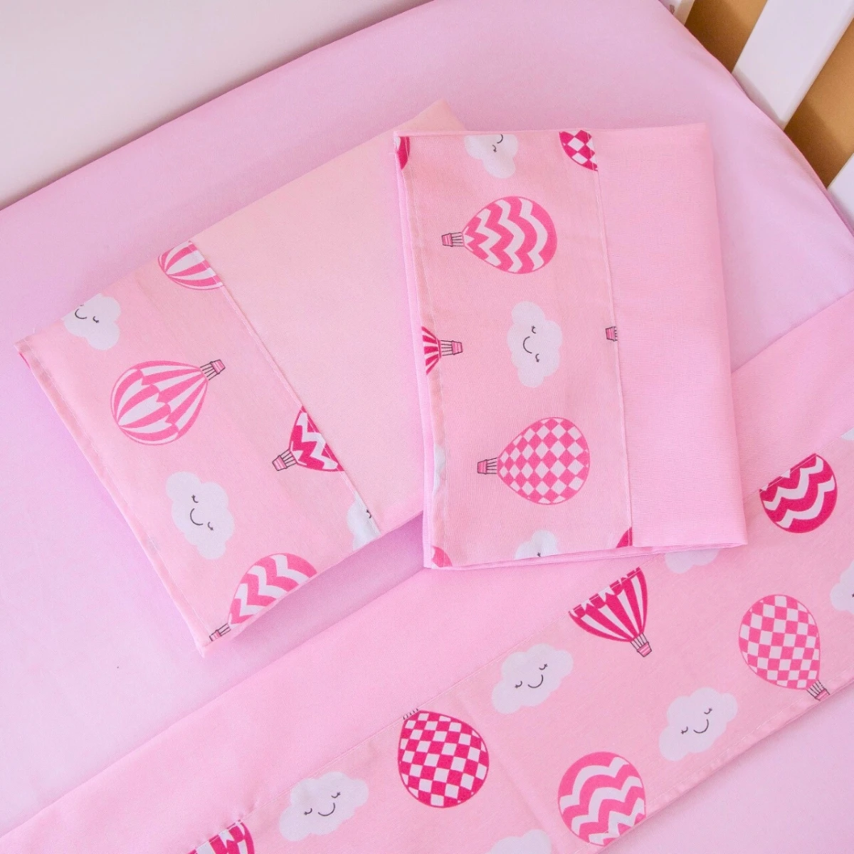 Com uma estampa suave de balões em tom rosa, o jogo de lençol transmite sensações de carinho, leveza e tranquilidade, criando um espaço harmonioso que favorece o descanso e o bem-estar do bebê. O rosa é uma cor clássica e atemporal, associada ao afeto e à serenidade, perfeita para compor quartos delicados e cheios de personalidade. A estampa de balões adiciona um toque lúdico e alegre, estimulando um ambiente acolhedor desde os primeiros dias de vida. 🎈🌸